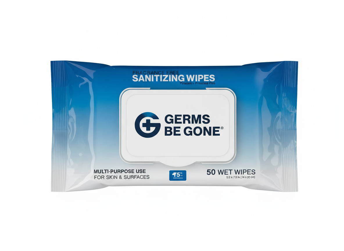 Stay protected anywhere you go with Germs Be Gone! These premium sanitizing wipes are designed to eliminate harmful germs, bacteria, viruses, and fungi—helping you maintain a clean and safe environment wherever life takes you. Each wipe is infused with Provitamin B5 to keep your hands soft and moisturized, making them ideal for everyday use. Health Canada approved and perfect for travel, work, school, or quick cleanups on the move.