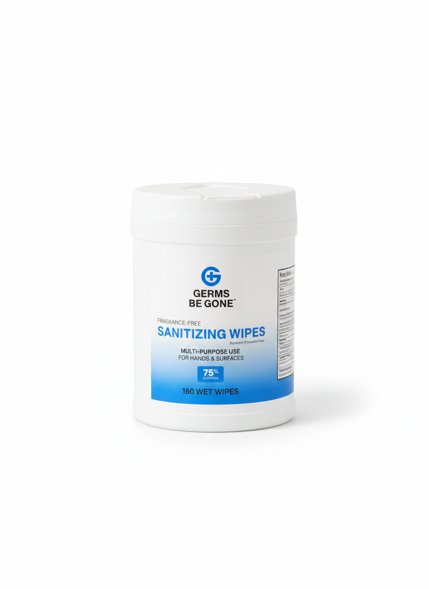 Experience powerful, reliable protection with Germs Be Gone Antiseptic Sanitizing Wipes — now available in a value-sized 160-count canister! Designed for everyday hygiene, these wipes offer fast, effective cleaning for hands, equipment, and high-touch surfaces. Each wipe is enriched with Provitamin B5 to help maintain moisture and prevent dryness, making them safe and comfortable for frequent use. Proudly Health Canada Approved, you can trust every wipe to deliver the cleanliness and confidence you need at home, work, or on the go.