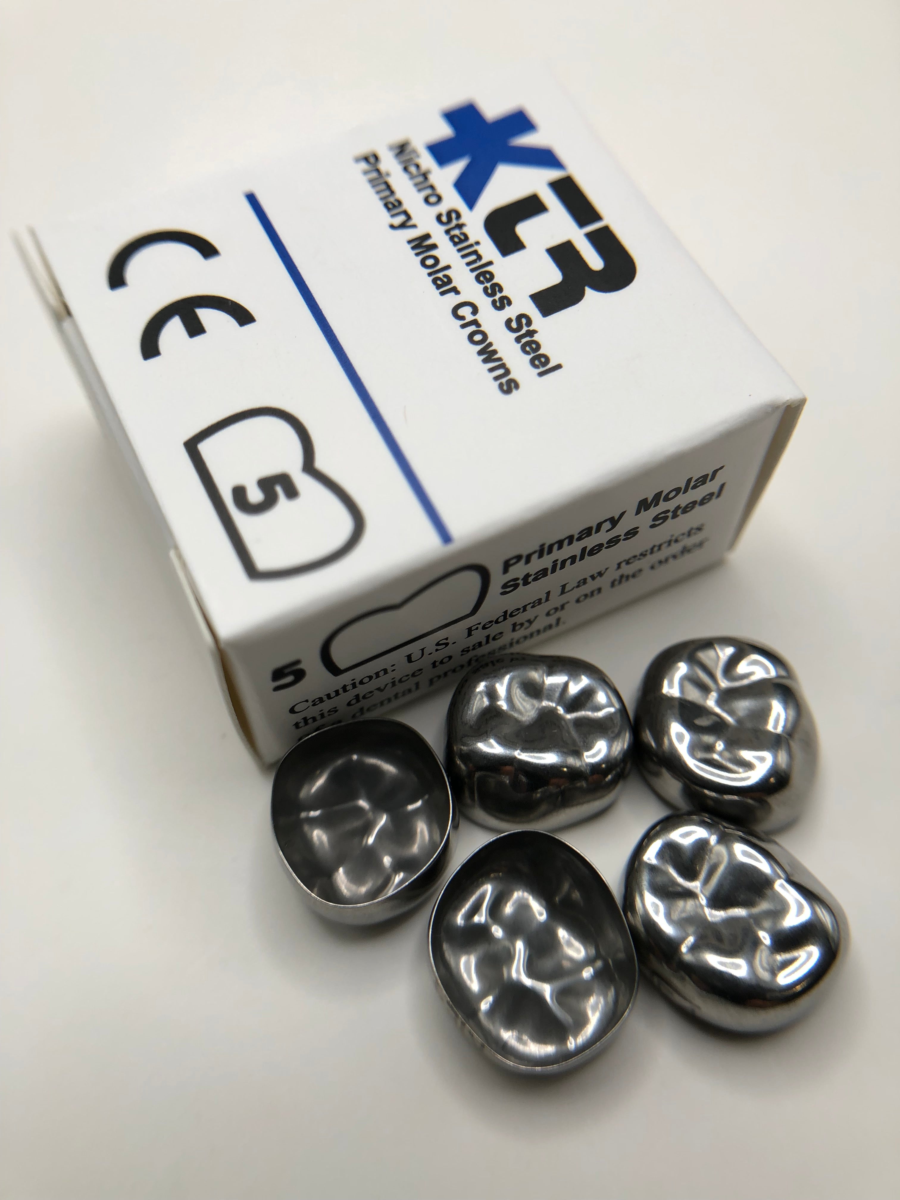 Lower Right 1st Molar Size 2 Stainless Steel Crowns BOX of 5 Crowns. Manufactured with high quality, medical-grade 304L Nickel Chromium Stainless Steel. Anatomically formed, pre-trimmed, with undercuts that maximize ease and minimize chair time.