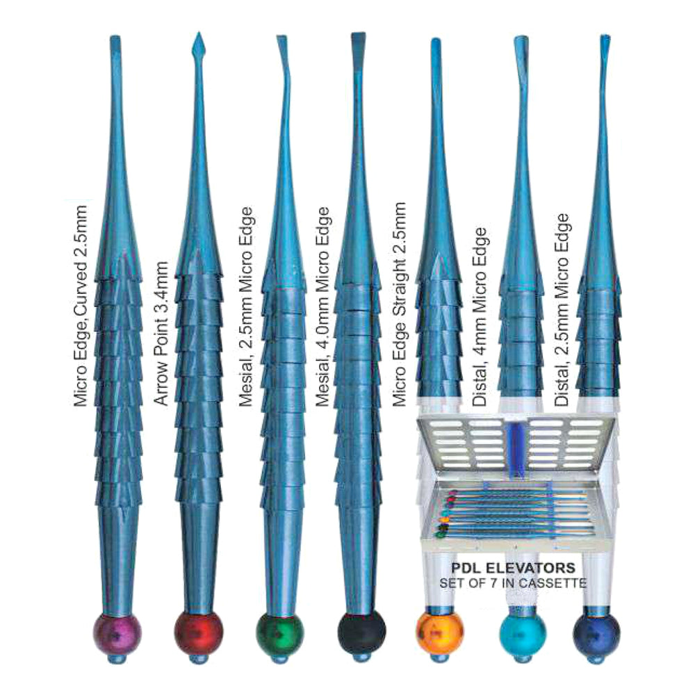 Set of 7: Includes seven periotome elevators with different tip sizes and shapes for versatile use.