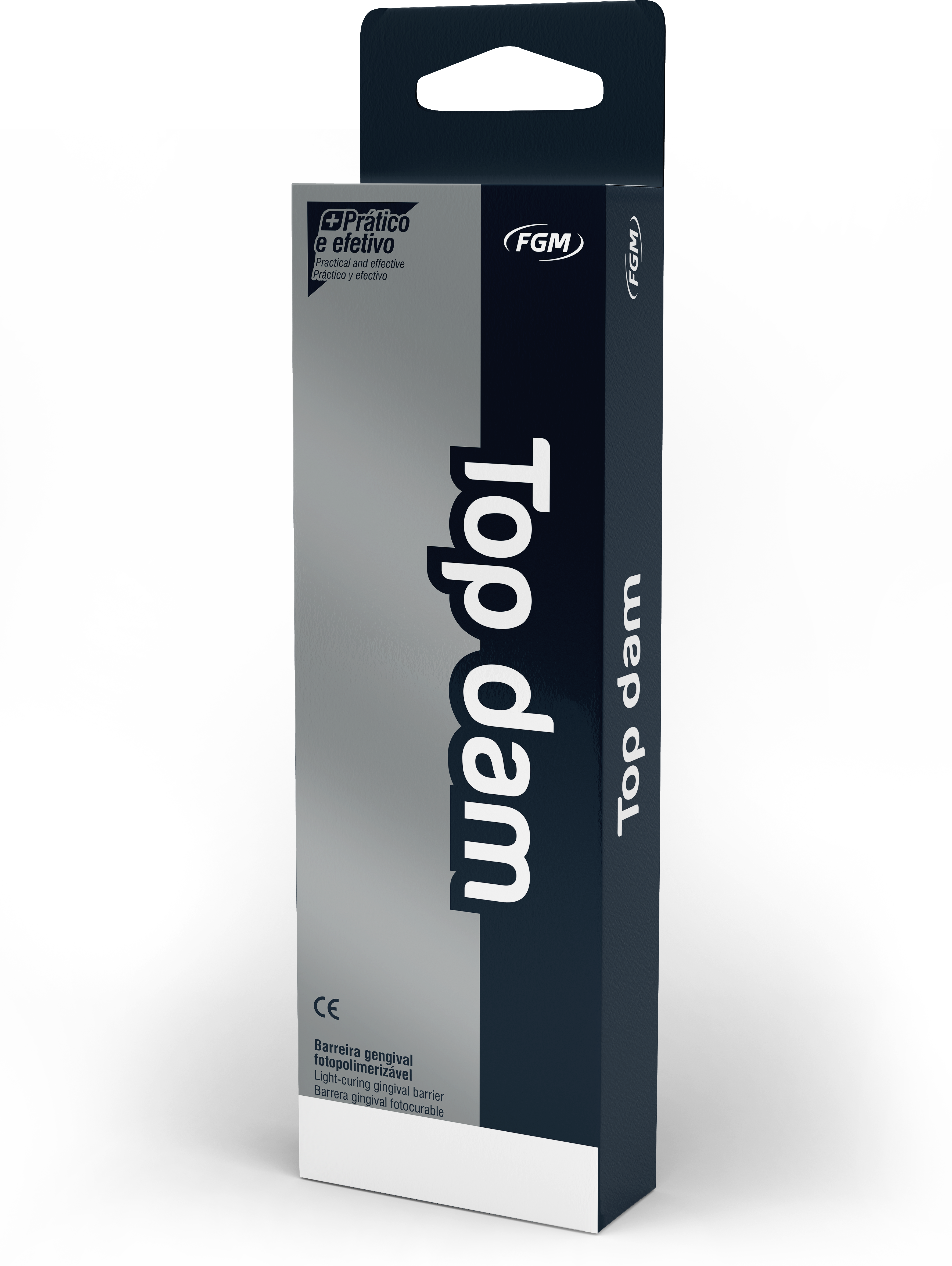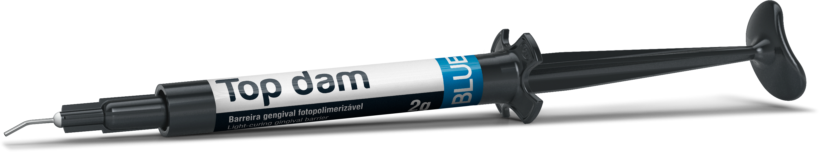 Top dam - light-curing resin Gingival Dam, Blue, 1 x 2g Syringe & 3 applicator tips. Replaces the rubber dam (complete isolation) in some cases where relative gum isolation is sufficient. A gingival barrier with excellent sealing power, providing easy removal without irritating the gingival tissues.