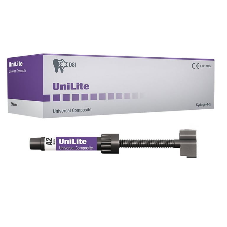 UniLite Light-Cure Micro-Hybrid Composite, A2, 4g Syringe, 1/Pk. Offers an outstanding solution for the restoration of teeth in the anterior and posterior areas. Superior tensile strength and low polymerization shrinkage. Excellent aesthetics. Radiopaque. Can be finished and polished to a high luster. Reliable handling.